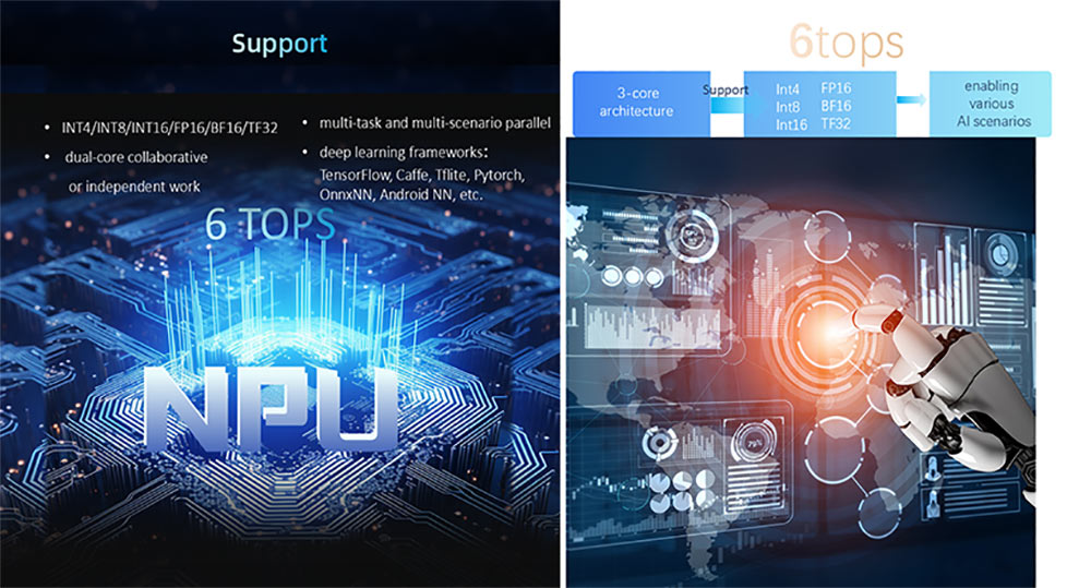 4. Edge AI: تمكن NPU المدمج 6 Tops NPU من بناء تطبيقات الذكاء الاصطناعى منخفضة الكلية مثل أنظمة التعرف على الوجه وأجهزة الاستشعار الذكية.