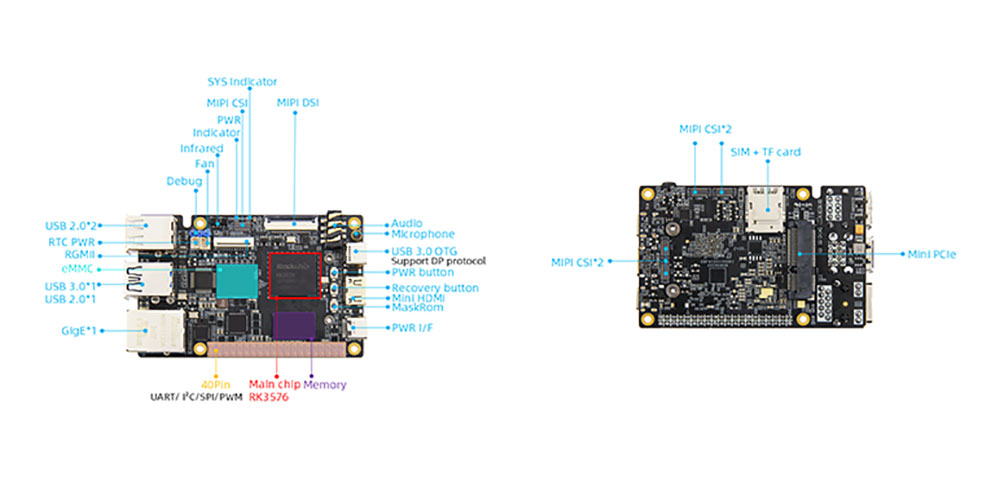 4. ميناء Gigabit Ethernet على متن ، RGMII ، USB3.0/2.0 ، Mini Pcle ، Mini HDMI ، شاشة MIPI وكاميرا MIPI وغيرها من الواجهات المحيطية ، مما يؤدي إلى 40 نقطة من الدبابيس غير المستخدمة ، واجهات التوسع الغنية لتلبية احتياجات التطوير!